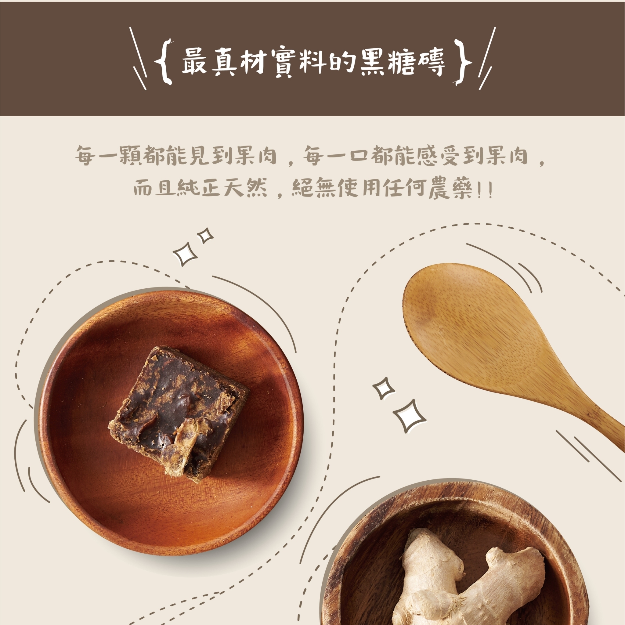 內容物-黑糖、二砂、老薑、己二烯酸鉀 (防腐劑)