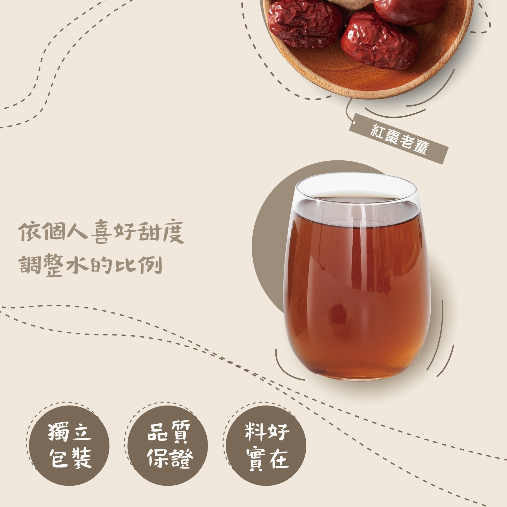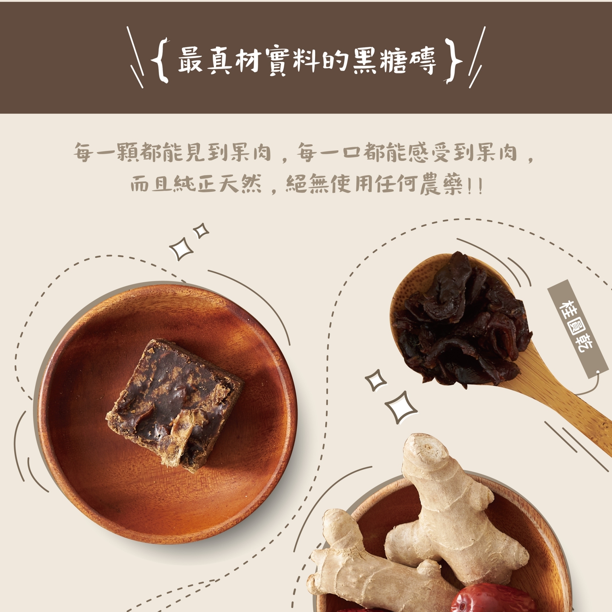 內容物-黑糖、二砂、老薑、紅棗、桂圓、己二烯酸鉀 (防腐劑)
